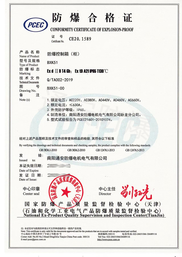 防爆控制箱(柜)防爆合格证